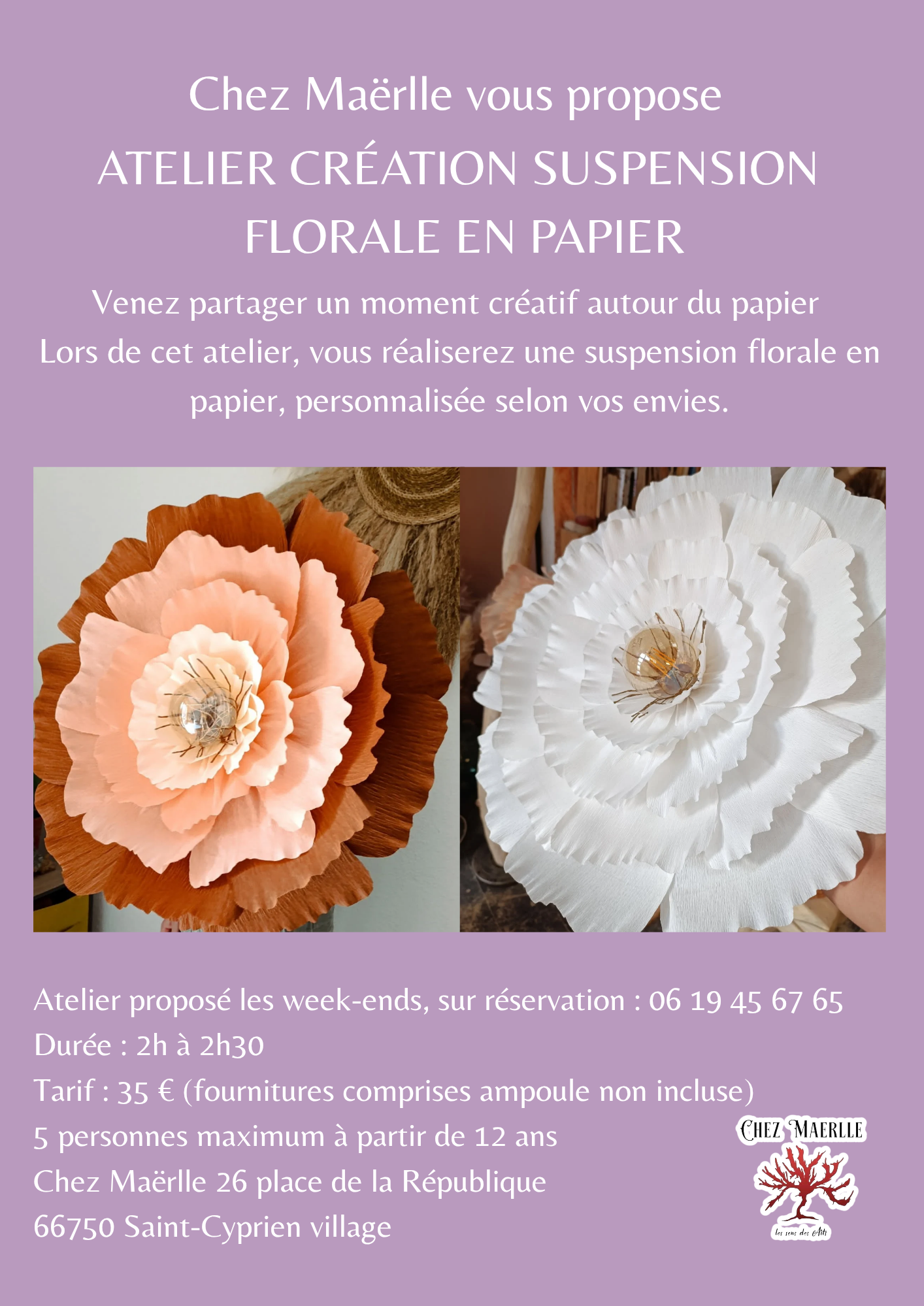CHEZ MAERLLE – ATELIER CRÉATION SUSPENSION FLORALE EN PAPIER